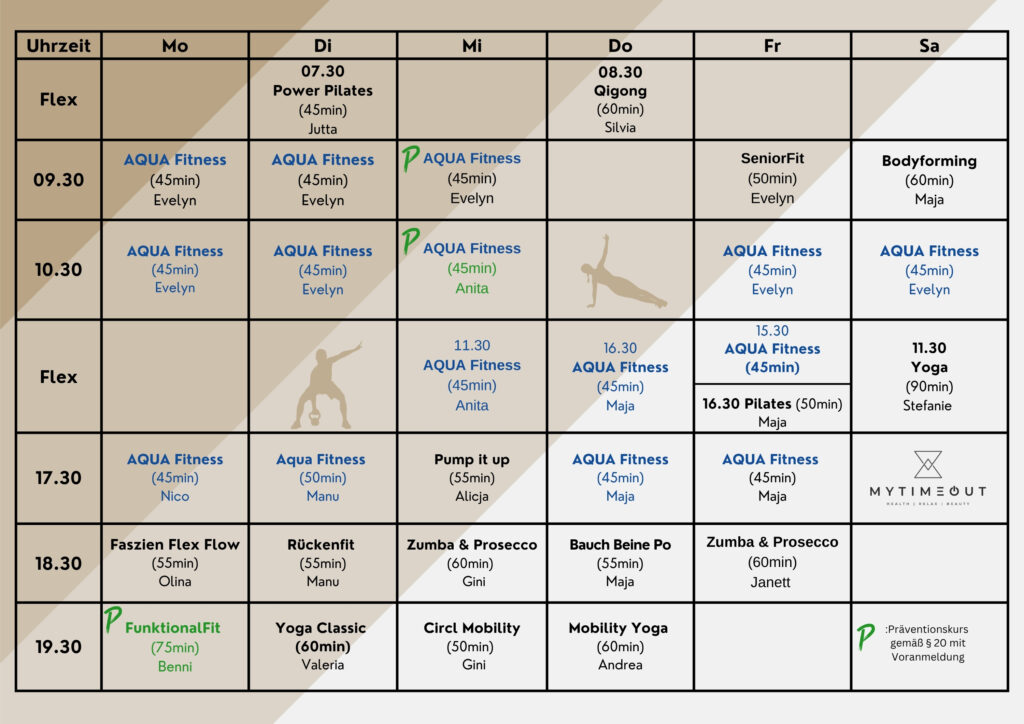 Wir bieten Kurse zu verschiedenen Tageszeiten und an verschiedenen Wochentagen an, sodass du immer die Möglichkeit hast, an einem Kurs zu versuchen, der perfekt in deinen Zeitplan passt. Auch warum noch warten? Melde dich jetzt für unsere Fitnesskurse an und starte deine Reise zu einem gesünderen und fitten Lebensstil!